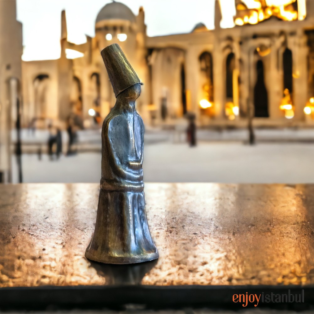 Every curve and line of this whirling dervish sculpture has been meticulously shaped, capturing the essence of the dervish's dance. The elongated design creates a visually striking composition, representing the dynamic and graceful nature of the whirling motion.