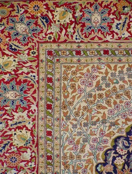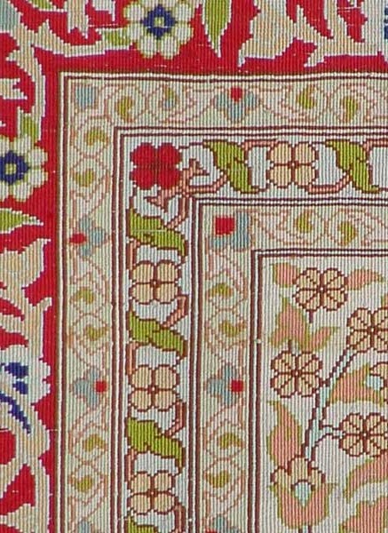 The finest contemporary and highest quality of silk and wool carpets currently made in Turkey are produced in town near istanbul, called Hereke. The Hereke carpets are either woven in pure silk or cotton and wool. The pure silk carpet uses silk from Bursa. in wool and cotton carpets the warps and wefts are cotton and the best quality of wool is used for knots in the pile...