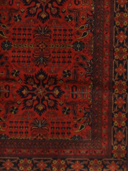 Khal Mohammadi carpets are from Afghanistan. Khal Mohammadi is the name of the producer of these rugs. The designs of last centry hah come out again. The color is clear bright rust or red. Afghan refugees who escaped from chaos of war in Afghanistan, with only their rugs and important necessities. thay are now creating again these old designs in the northern Pakistan border camps.