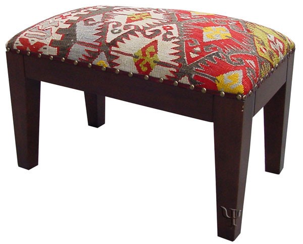 Enhance your space with a handcrafted Kilim stool, featuring authentic Turkish woven fabric and a sturdy wooden frame. Perfect as a decorative accent, footstool, or extra seating, this bohemian-style furniture piece adds a touch of tradition and elegance to any room. Shop now for a unique Turkish Kilim ottoman with vibrant geometric patterns and timeless artisan craftsmanship.