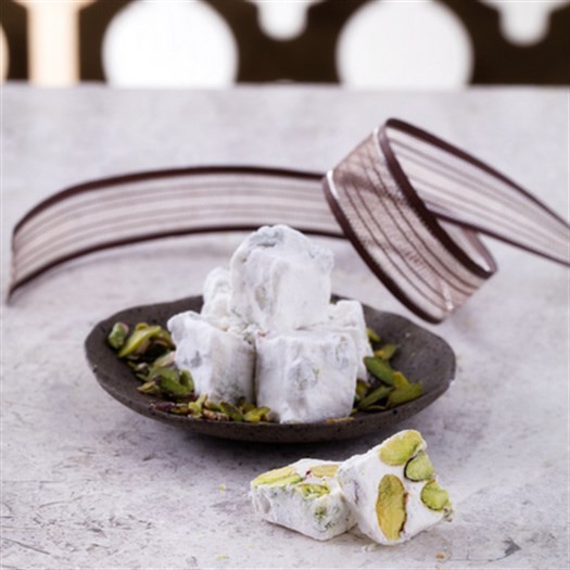 Turkish delight or Lokum is a family of confections based on a gel of starch and sugar. Premium varieties consist largely of chopped dates, pistachios and hazelnuts or walnuts bound by the gel; the cheapest are mostly gel, generally flavored with rosewater, mastic, or lemon. The confection is often packaged and eaten in small cubes dusted with icing sugar, copra, or powdered cream of Tartar, to prevent clinging. Other common types include such flavors as cinnamon and mint. In the production process, soapwort may be used as an emulsifying additive.