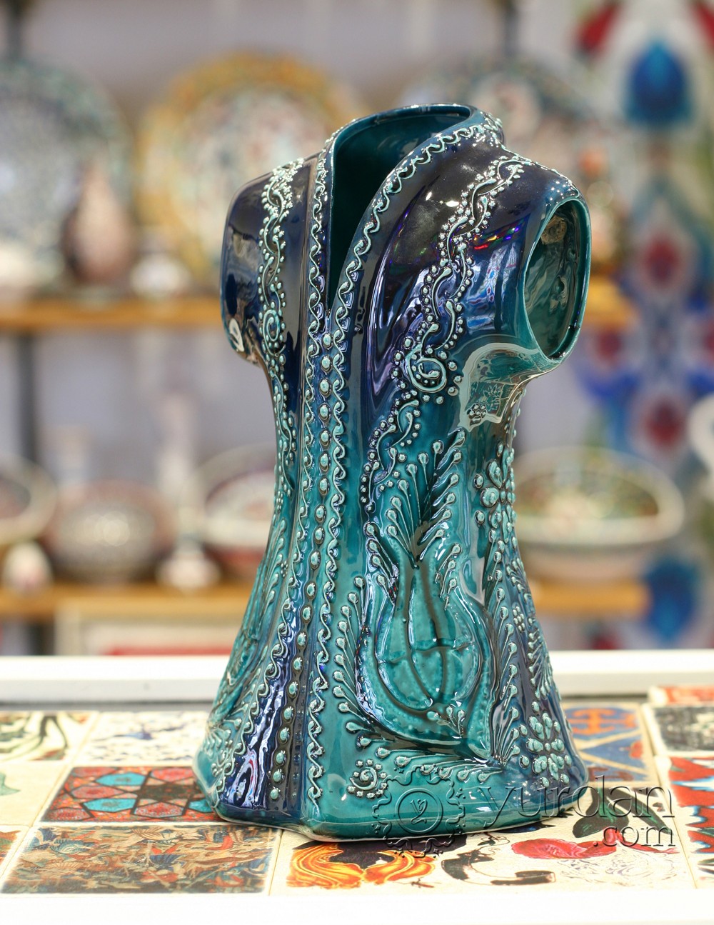 An important cultural center during the reign of Suleyman the Magnificent, the rural town of Iznik (ancient Nicea) nestles on a lakeside in Northwest Turkey. Here in the early 16th century an "Imperial ware," now called Iznik, was made for the Istanbul court of the Ottoman Sultan--the richest, most powerful monarch in Europe. Originally inspired by Chinese pottery, Imperial ware was so exquisite that European collectors in the mid 19th century thought it came from Persia. Only in the 1920s did scholars accept that Iznik ceramics were Ottoman, giving due recognition at last to Turkish potters for some of the world´s most beautiful and striking designs. Iznik ware has survived to the present day in all its splendor. Iznik tiles adorn palaces and mosques; the largest collection of ceramic vessels is in the British Museum. Made from Top quality material and has master craftmanship.