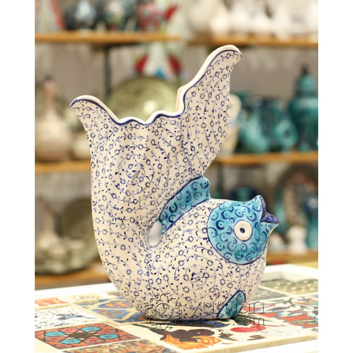 This ceramic fish, one of the decorative ceramic figures in Turkish ceramic arts, was painted with the Golden Horn (Halic) technique, one of the classical Iznik designs. Handmade fish figure is carefully made by our talented artists. The ceramic, which was fired at 900 degrees Celsius by glaze, is striking with its bright blue and turquoise colors.