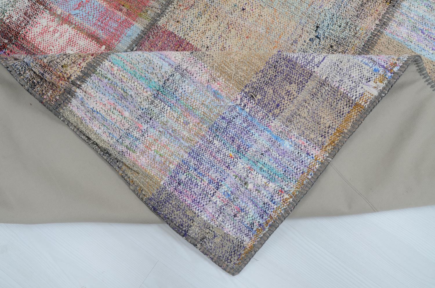 Over-dyed Anatolian Patchwork Rug created by first neutralizing the colors and then over-dying to achieve a contemporary effect and bring old hand-made rugs back to life. The result is almost like an abstract painting. This piece is backed with cotton cloth as reinforcement
